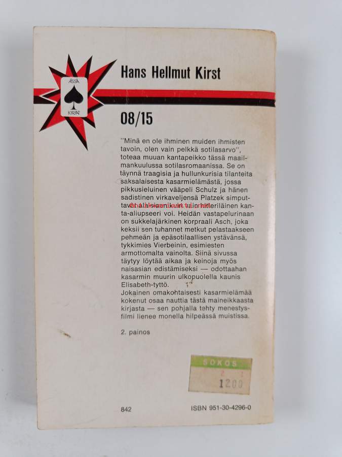 08/15 - Kuolemattoman hauska romaani kasarmielämän tuskista ja iloista. 2. painos, 1978. Ässäkirjat sarjaa