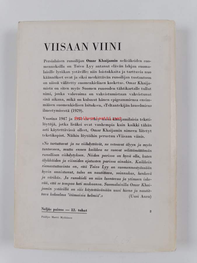 Viisaan viini. (Runot)