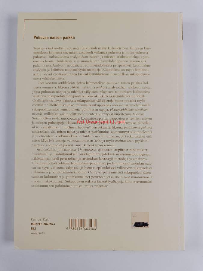 Sarja: Suomalaisen Kirjallisuuden Seuran toimituksia 854Asiasanat: arkielämä, puhe, kielenkäyttö, sukupuoli