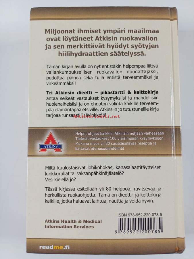 Muu(t) tekijä(t): Riitta Santala-KöykkäAlkuteos: The Atkins essentialsAsiasanat: laihdutus, Atkinsin dieetti, painonhallinta, hiilihydraatit