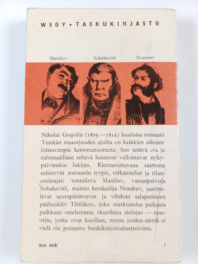 Muu(t) tekijä(t): Jalo KalimaMerkinnät: omistajamerkintäSarja: Taskukirjasto 12Alkuteos: Mërtvyje duÅsiAsiasanat: klassikot, venäläinen kirjallisuus