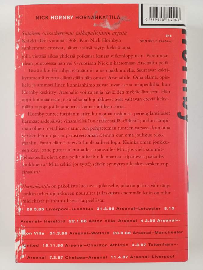 Merkinnät: omistajamerkintäAlkuteos: Fever pitchAsiasanat: muistelmat, jalkapallo, urheilukilpailut, penkkiurheilu