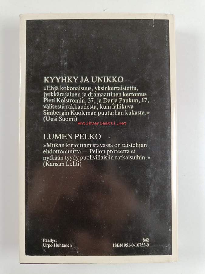 Hyvä. Tarkempi kuntoluokka: K3+ ; Pienoista kulumaa reunoilla ja kulmissa, selkämyksessä hieman vinoutta. Kansipaperin kunto: joitain repeämiä/kulumaa