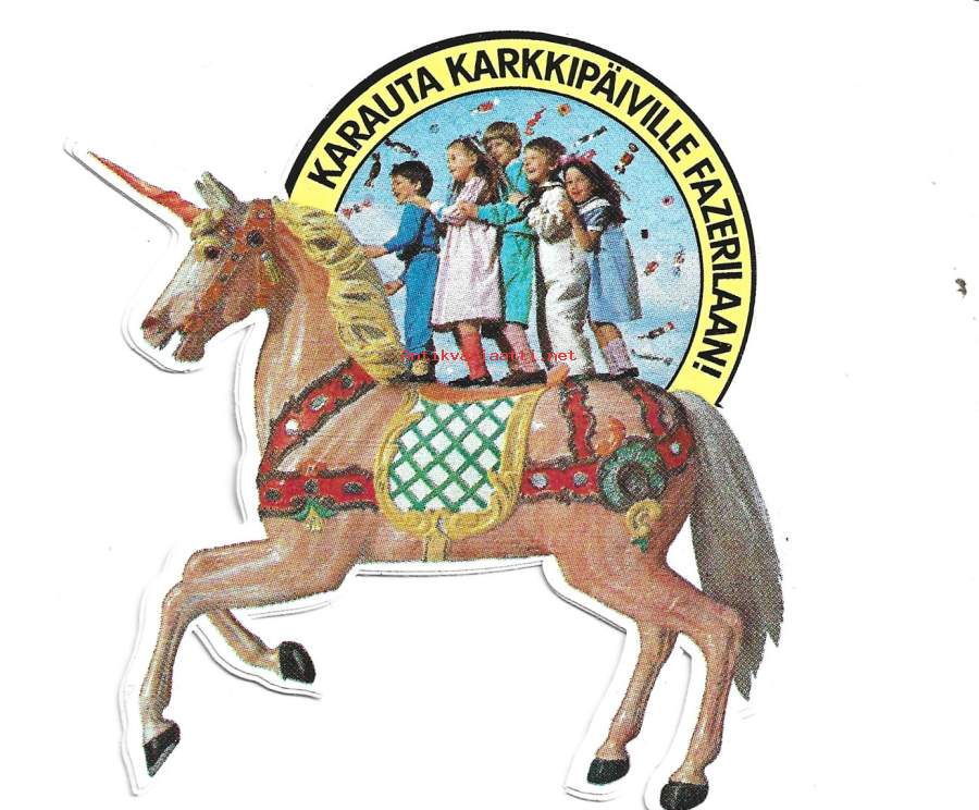 Karauta Karkkipäiville Fazerilaan tarra 10x10 cm