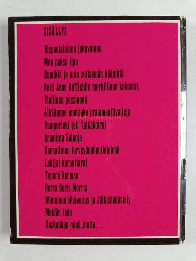 Hyvä. Tarkempi kuntoluokka: K3- ; Hieman kulumaa kansissa, pienoista repeämää selkämyksen kulmissa, pienoista tahraisuutta, selkämyksessä hieman vinoutta