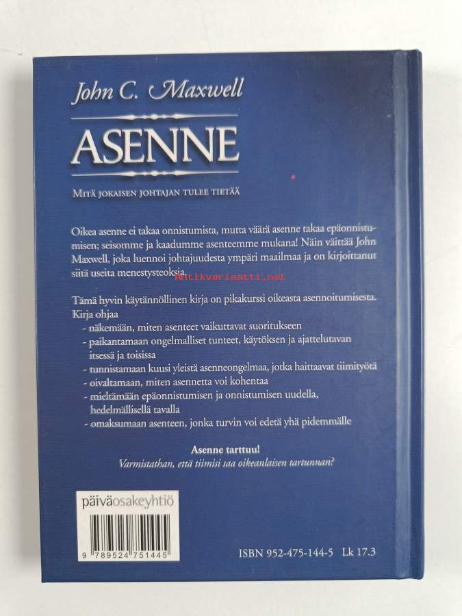 Alkuteos: Attitude 101Asiasanat: johtaminen, ihmissuhteet, asenteet, organisaatiopsykologia
