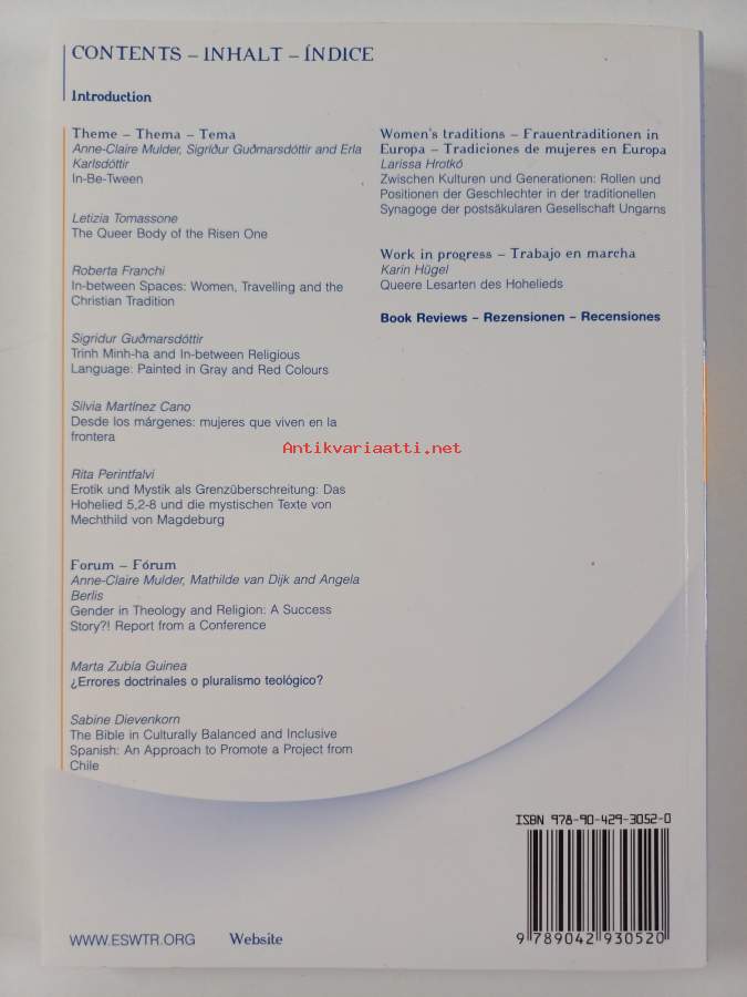 Koko nimi: In-between spaces : creative possibilities for theologies of gender = Entre espacios : propuestas creativas para las teologias de género = Zwischenräume : Kreative Möglichkeiten für Gender-TheologienMuu(t) tekijä(t): Ura Blohm, Marta BodoSarja: Jahrbuch der Europäischen Gesellschaft für theologische Forschung von Frauen vol. 21Asiasanat: raamatuntulkinta, teologia, queer-tutkimus, feministiteologia, teologi, bibeltolkning, queer-forskning, feministteologi