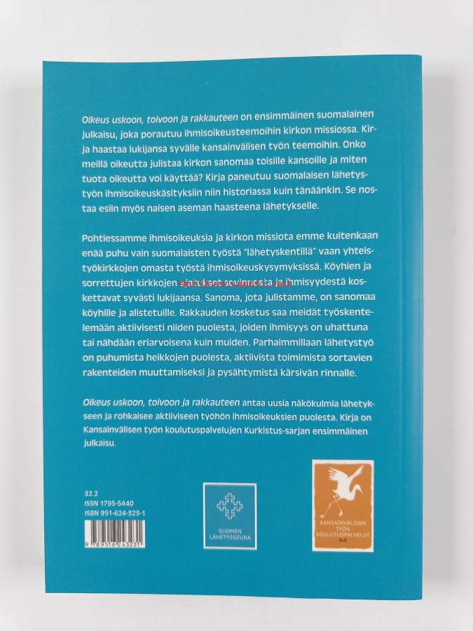 Muu(t) tekijä(t): Mari Pöntinen, Mikko HelminenMerkinnät: omistajamerkintäSarja: Kurkistus; Kansainvälisen työn koulutuspalvelujen julkaisuja 1Asiasanat: lähetystyö, naisen asema, kansainväliset sopimukset, ihmisoikeudet, uskonnot, ekumenia, etiikka, kristillinen etiikka, kirkko, kehitysyhteistyö, köyhyys, sosiaalietiikka, rasismi, oikeudenmukaisuus, uskonnonvapaus, kansainvälinen apu, vastustus, vapautuksen teologia, missiologia