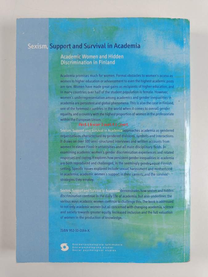 Merkinnät: omistajamerkintäSarja: Social psychological studies 6Asiasanat: naiset, naisen asema, kokemukset, tasa-arvo, yliopistot, syrjintä, korkeakoulut, kvinnans ställning, jämställdhet, universitet, högskolor, diskriminering
