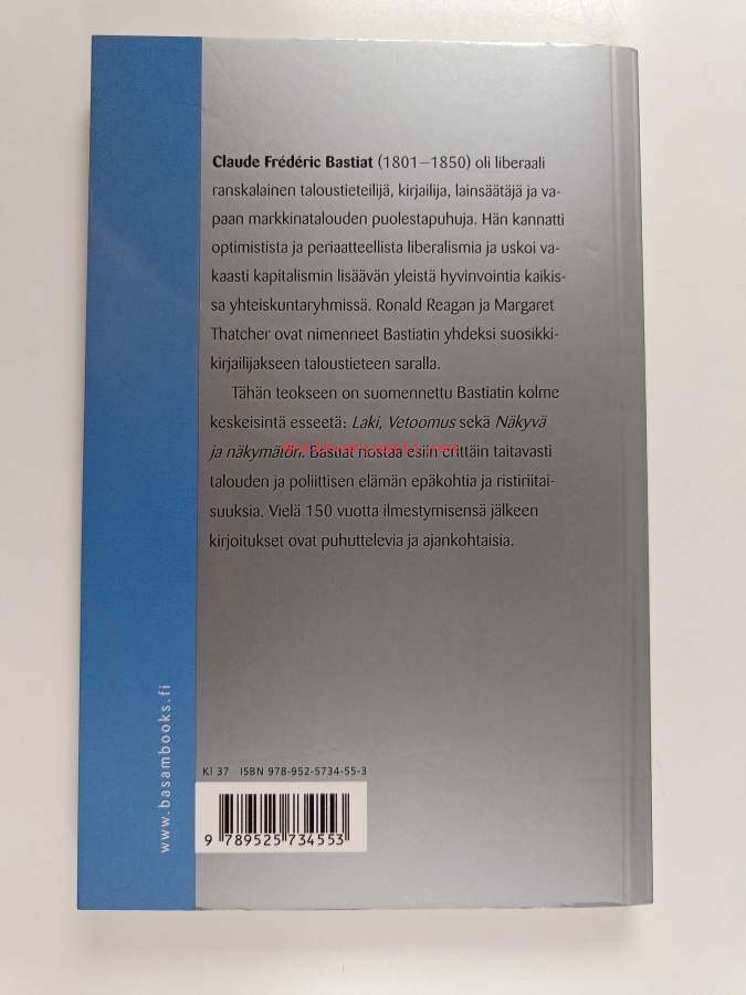 Muu(t) tekijä(t): Riikka Toivanen, Petri KajanderSarja: TalousklassikkoAlkuteos: La LoiAsiasanat: Liberalismi, vapaus, yhteiskuntafilosofia, lait, oikeudenmukaisuus, talousteoriat, libertarismi