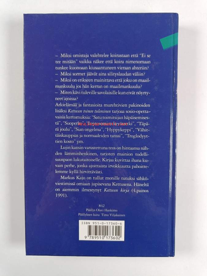 Kettusen kannettava, 2008. Kajon sanataituruus arjen ja juhlan pienistä iloista ja murheista jaksaa kantaa vuodesta toiseen. Lukija myhäilee mukana.