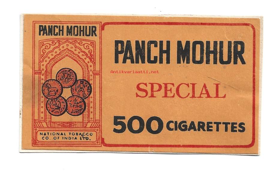 Panch Mohur cigarettes vintage tukkupakkauksen etiketti mainos - tupakkaetiketti