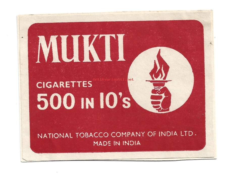 MUKTI cigarettes vintage tukkupakkauksen etiketti mainos - tupakkaetiketti