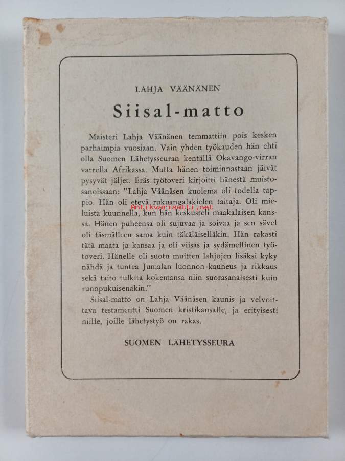 Hyvä. Tarkempi kuntoluokka: K3- ; Pientä kulumaa kansissa, pienoista repeämää reunoilla ja kulmissa, selkämyksessä hieman vinoutta, selkämyksessä lukutaittumaa