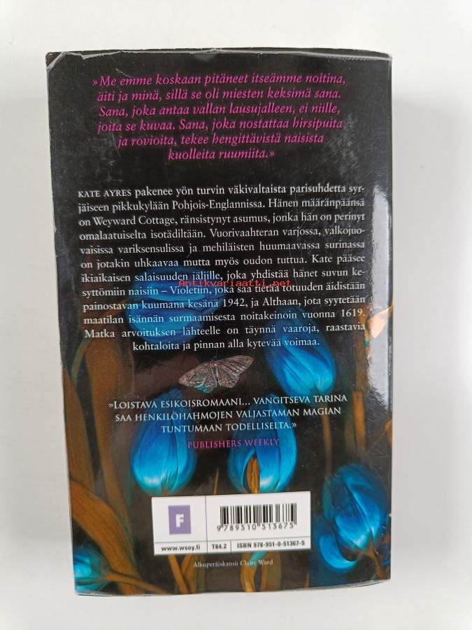 Alkuteos: WeywardAsiasanat: naiset, naisen asema, englanti, noitavainot, luontosuhde, parisuhdeväkivalta, perhesalaisuudet, yliluonnolliset voimat, aikatasot