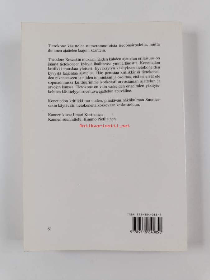 Muu(t) tekijä(t): Maarit TillmanMerkinnät: omistajamerkintäAlkuteos: The cult of informationAsiasanat: tietotekniikka, atk, yhteiskunta, yhteiskunnalliset vaikutukset