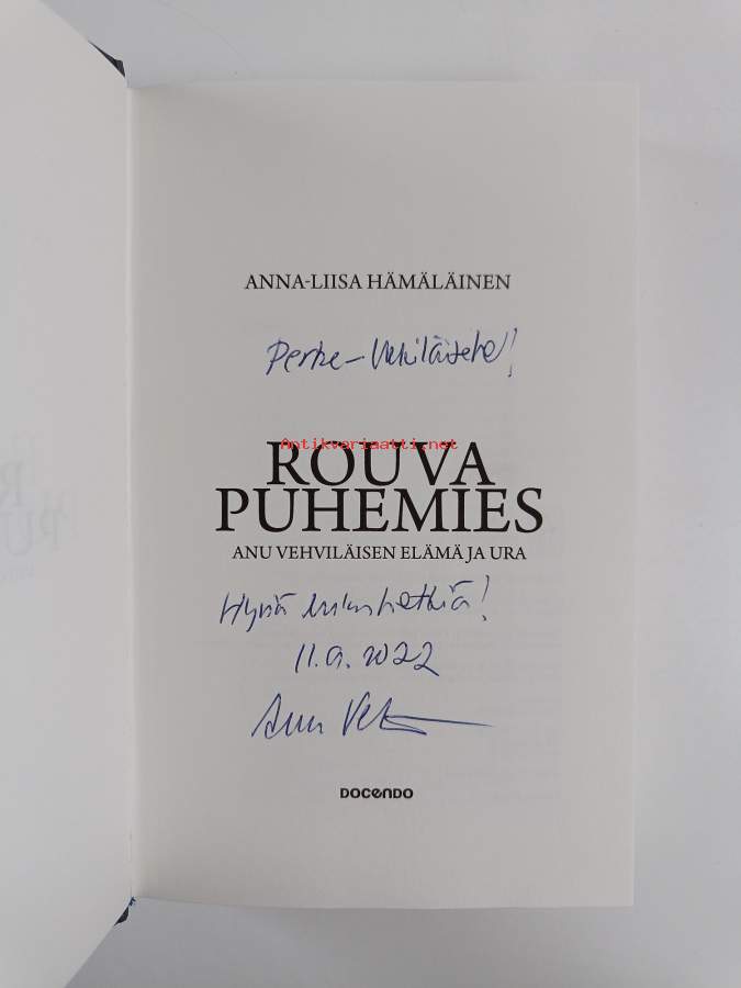 Rouva puhemies – Anu Vehviläisen elämä ja ura (signeerattu, tekijän omiste)