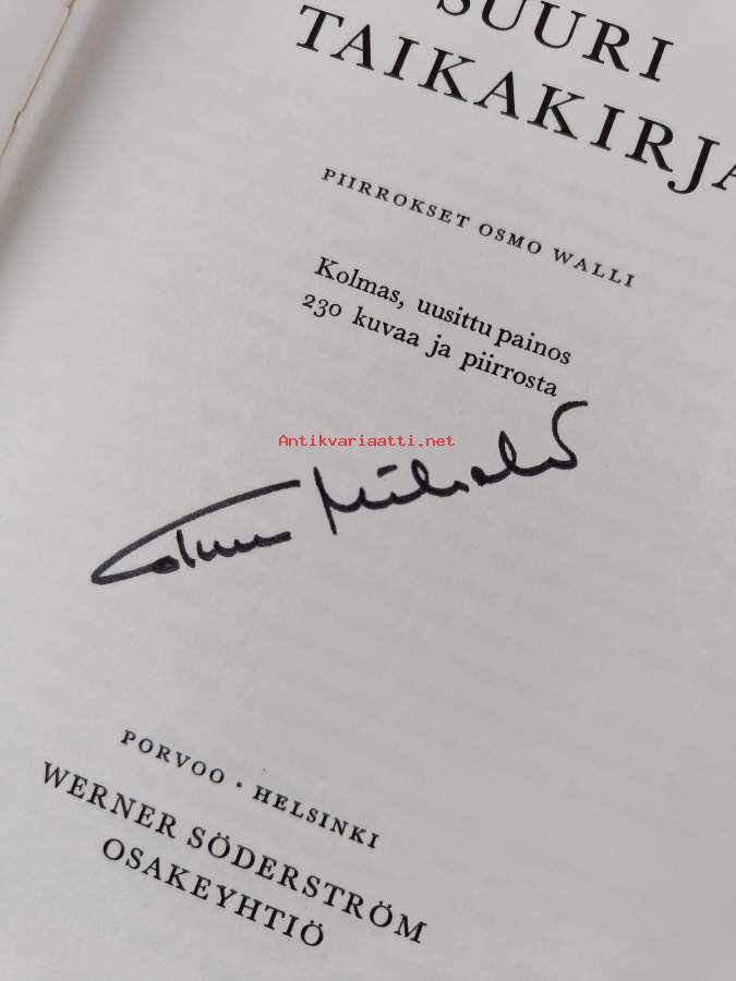 Hyvä. Tarkempi kuntoluokka: K3- ; Hieman kulumaa kansissa, selkämyksessä hieman vinoutta. tekijän signeeraus