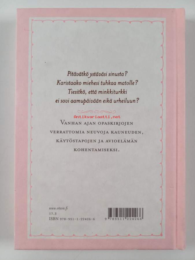 Muu(t) tekijä(t): Lotta SonninenAsiasanat: historia, naiset, käytösoppaat, tavat, seurustelu, tapakulttuuri, avioliitto, niksit, pukeutuminen, kauneudenhoito, tavat (tapakulttuuri), etiketti (tapakulttuuri)