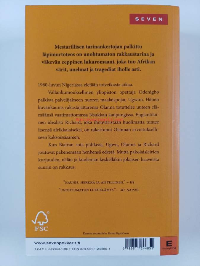 Muu(t) tekijä(t): Sari KarhulahtiSarja: SevenAlkuteos: Half of a yellow sunAsiasanat: Nigeria, Biafra
