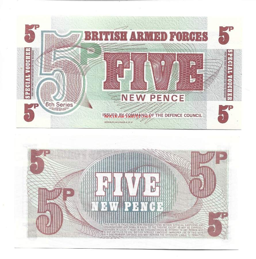 Englanti / British Army Forces 5 New Pence 1972 - seteli