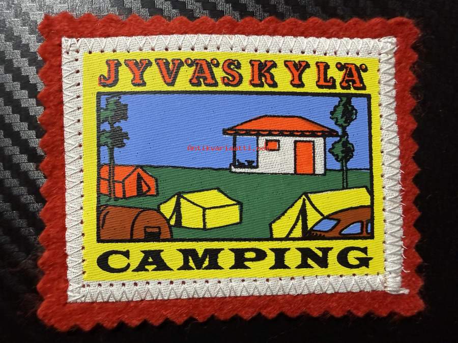 Jyväskylä Camping -kangasmerkki / matkailumerkki / hihamerkki / badge -pohjaväri punainen