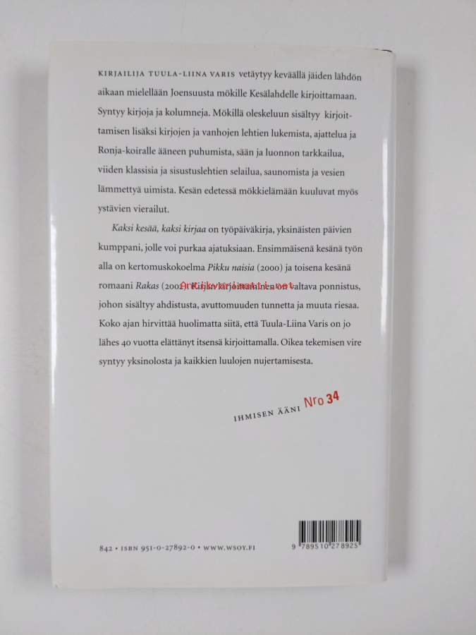 Kaksi kesää, kaksi kirjaa (signeerattu, tekijän omiste, ERINOMAINEN)