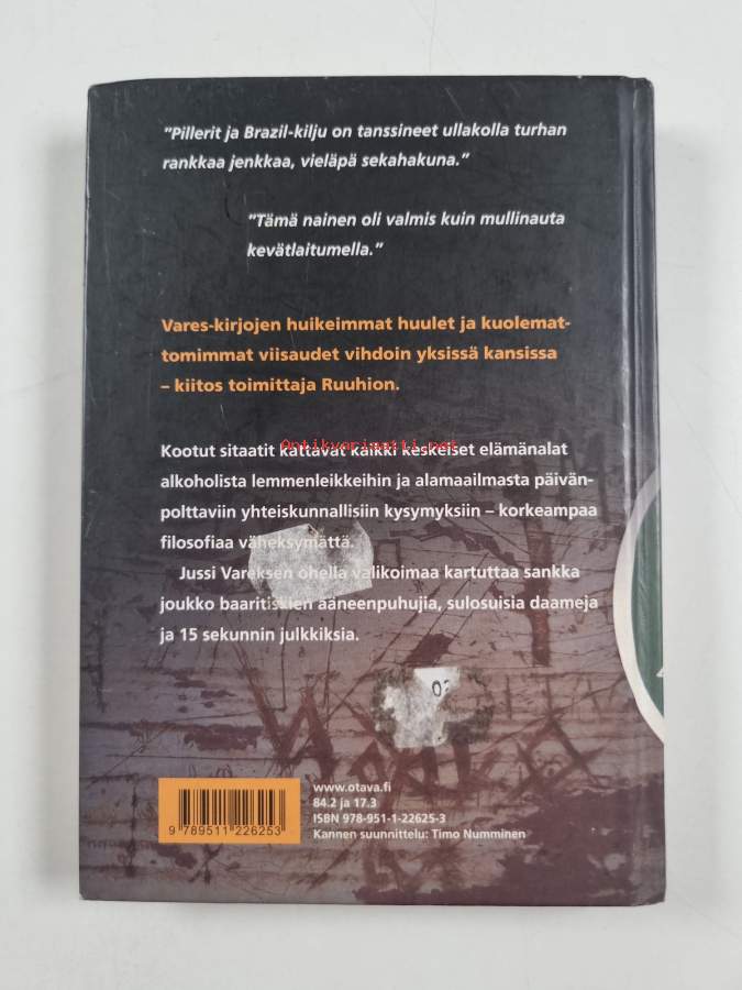 Hyvä. Tarkempi kuntoluokka: K3+ ; Hieman kulumaa kansissa, takana hintalapun jäämää, selkämyksessä hieman vinoutta