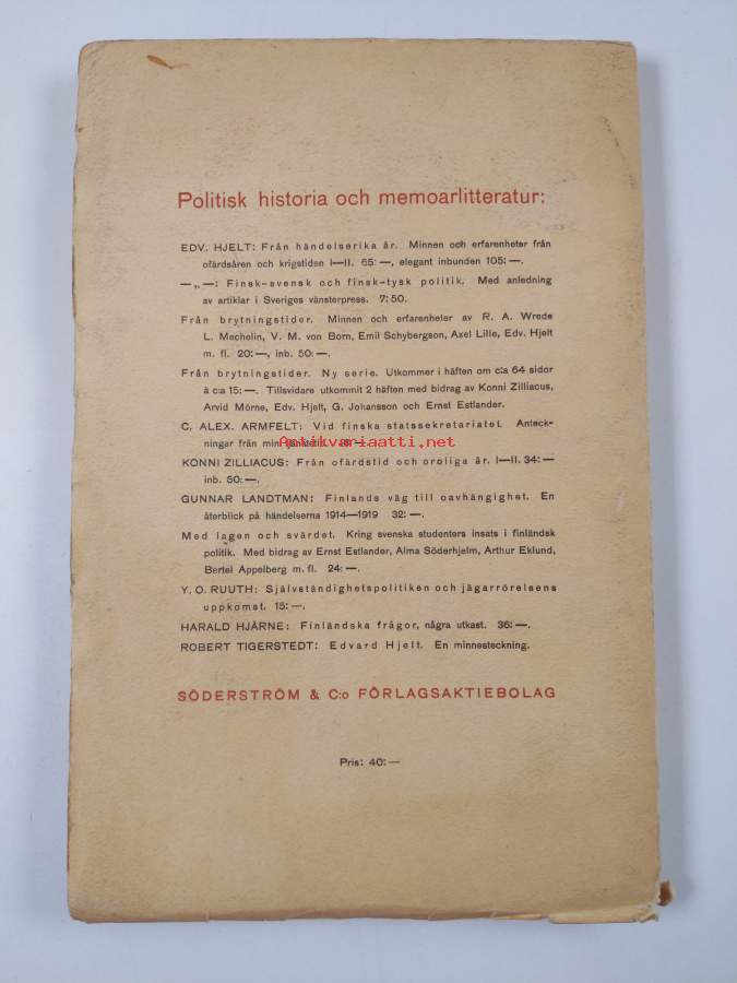 Finlands Adelsförbunds Årsskrift II 1927 -vuosikirja mm. henkilöartikkeleineen
