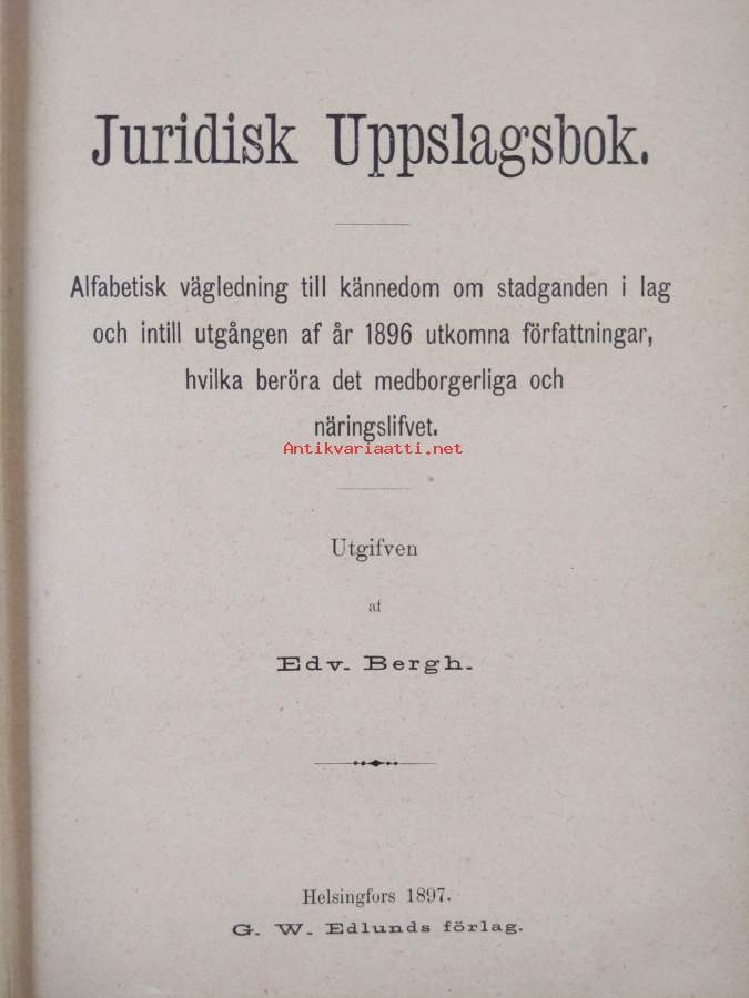 Juridisk uppslagsbok : alfabetisk vägledning till kännedom om stadganden i lag och intill utgången af år 1896 utkomna författningar, hvilka beröra det medborgerli...