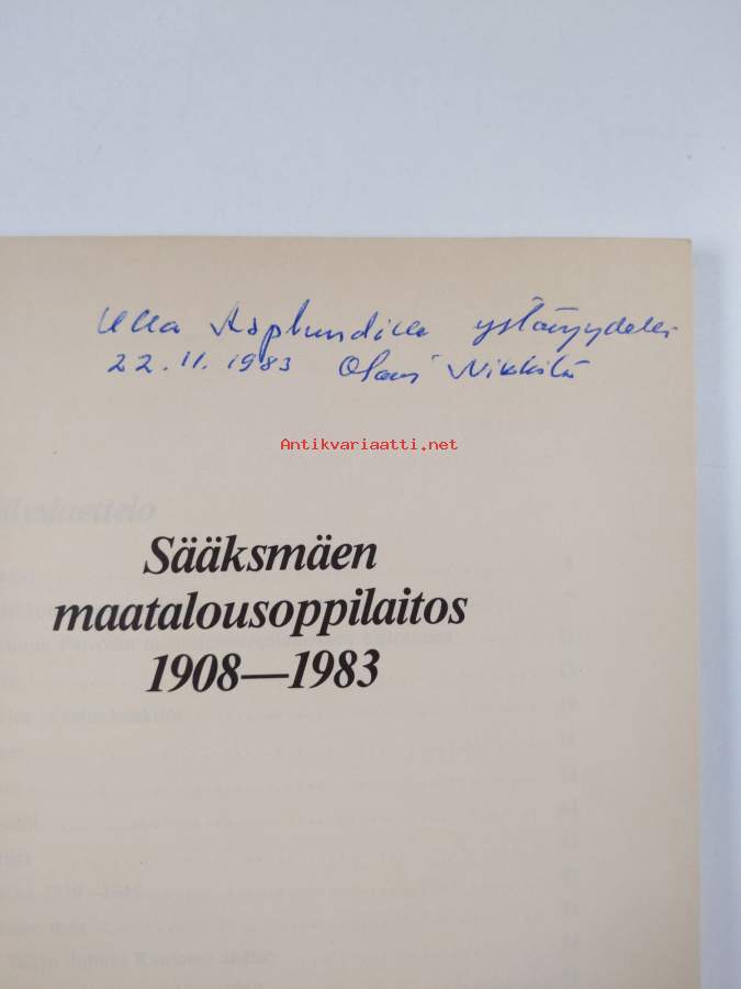 Sääksmäen maatalousoppilaitos 1908-1983 (signeerattu)