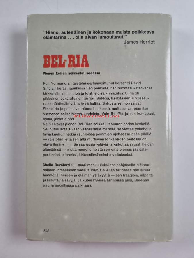 Kirjavaliot : Burnford, Sheila : Bel Ria, Brent, Madeleine : Kauriinkivi, Beach, Edward L. : Kylmä meri, Marshall Alan : Elämä edessäni