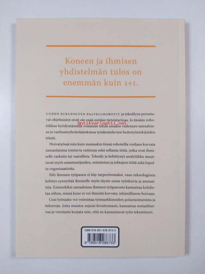 Muu(t) tekijä(t): Antti Kauhanen, Cristina Andersson ym.Sarja: Eva raportti 2/2016Asiasanat: palvelut, johtaminen, verotus, työelämä, muutos, hoitotyö, palkat, organisaatiot, sosiaaliturva, ammatit, työmarkkinat, sairaalat, työ, teknologia, tekoäly, kehitys, työntekijät, automaatio, hoivatyö, robotit, robotiikka, työllisyys, työnkuva, vanhainkodit, kotipalvelut, työnjako, hoiva-ala