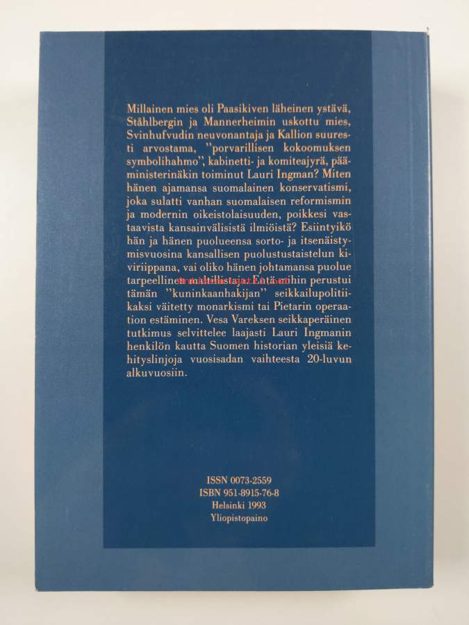 Sarja: Historiallisia tutkimuksia 174Asiasanat: poliitikot, henkilöhistoria, poliittinen historia, konservatismi
