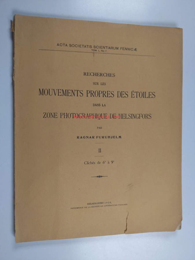 Sarja: Recherches sur les mouvements propres des étoiles dans la zone photographique de Helsingfors 2; Acta Societatis scientiarum Fennicae tom. 50,7
