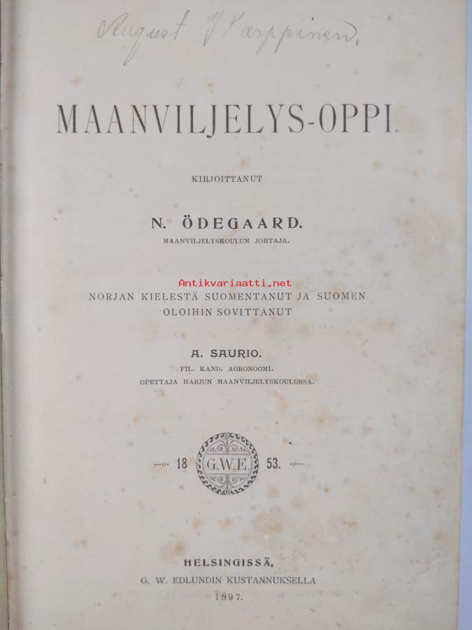 Maanviljelys-oppiKirjaÖdegaard, N. ; Saurio, A.Edlund 1897.