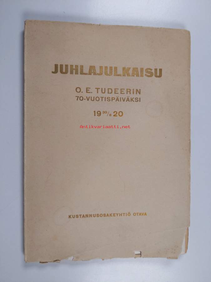 Juhlajulkaisu O. E. Tudeerin 70-vuotispäiväksi 30.8.1920
