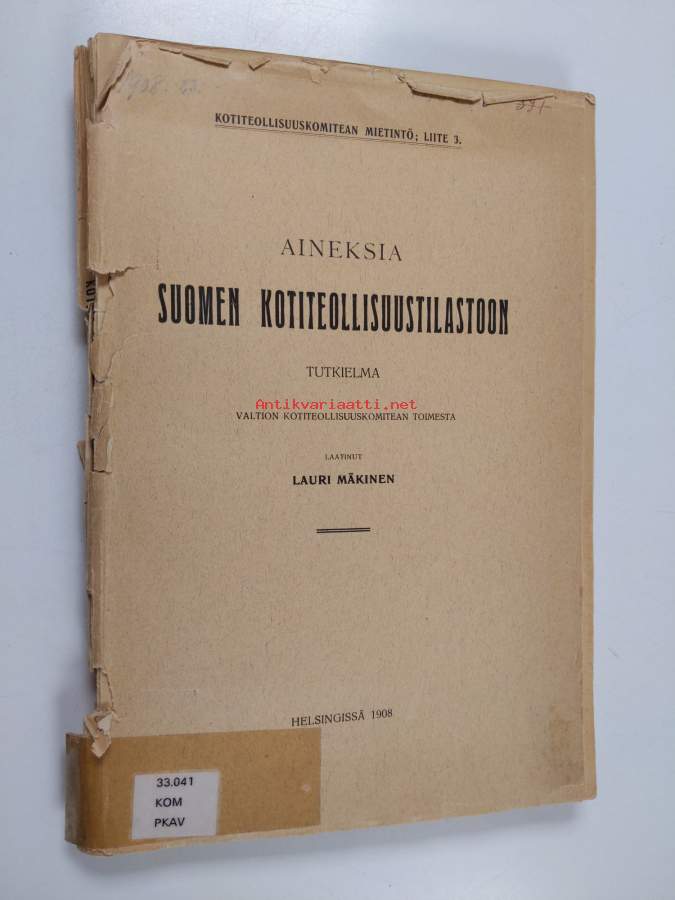 Aineksia Suomen kotiteollisuustilastoon : tutkielma valtion kotiteollisuuskomitean toimesta