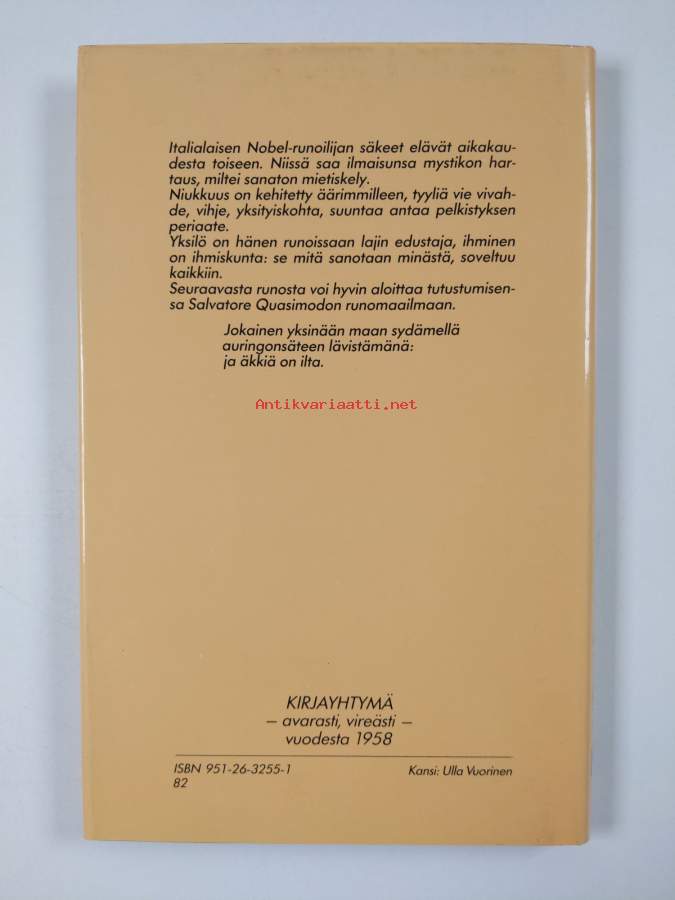 Hyvä. Tarkempi kuntoluokka: K3+ ; Hieman käytön jälkeä kansissa, selkämyksessä aavistus vinoutta. Kansipaperin kunto: pientä kulumaa