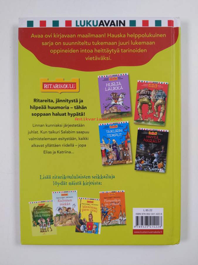 Muu(t) tekijä(t): Raija (suom.) Rintamäki, Mats (kuvitus) VänehemSarja: Lukuavain ; RitarikouluAlkuteos: Fest i borgen!