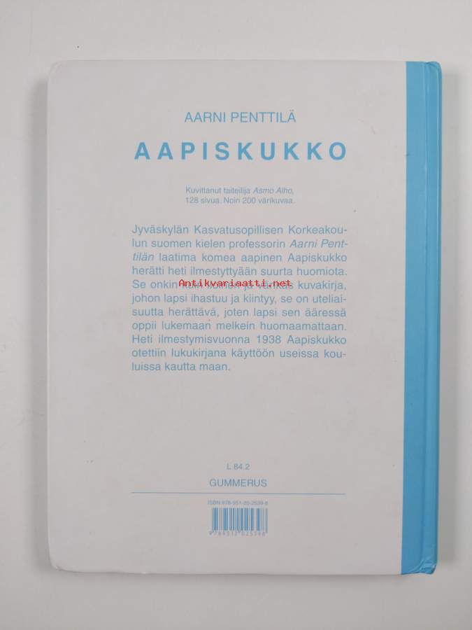 Hyvästi Aapiskukko, 2000. 10.p. Näköispainos. ehtymätön satuaarre, johon juuri lukemaan oppiva lapsi ihastuu ja kiintyy.