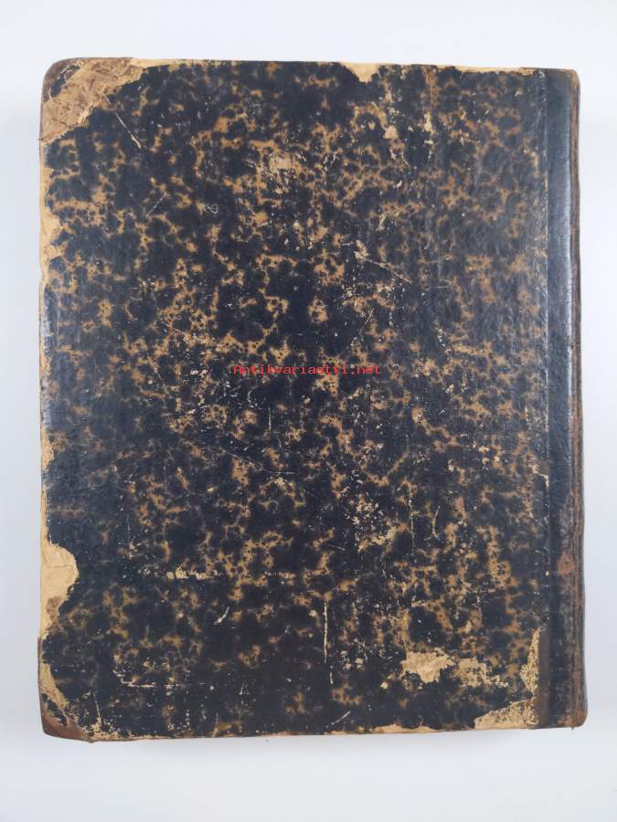 teksti fraktuuraa ; sivujen alasyrjällä ja sivujen reunoilla hieman läikkää ; muutaman sivun reunalla pienoista rispaantumaa ; joillakin sivuilla hieman nuhruisuuutta