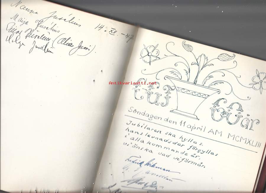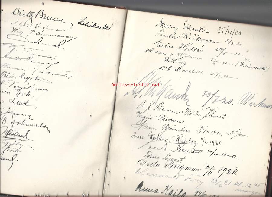 Vanha arvokas vieraskirja 1910 - 1948 yht n 67 sivua