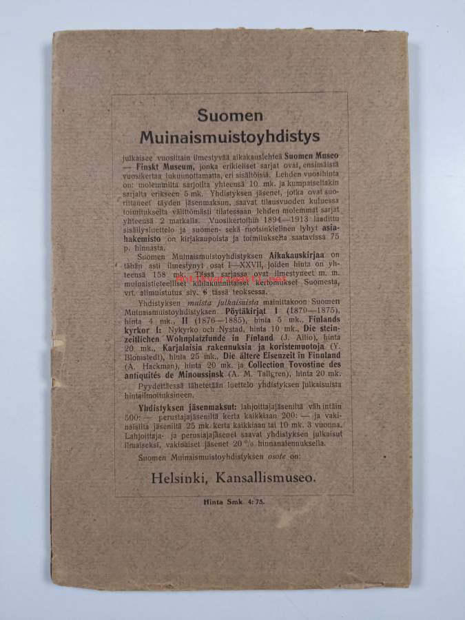 Tyydyttävä. Tarkempi kuntoluokka: K2+ ; Hieman repeämää kansissa, selkämyksessä aavistus vinoutta