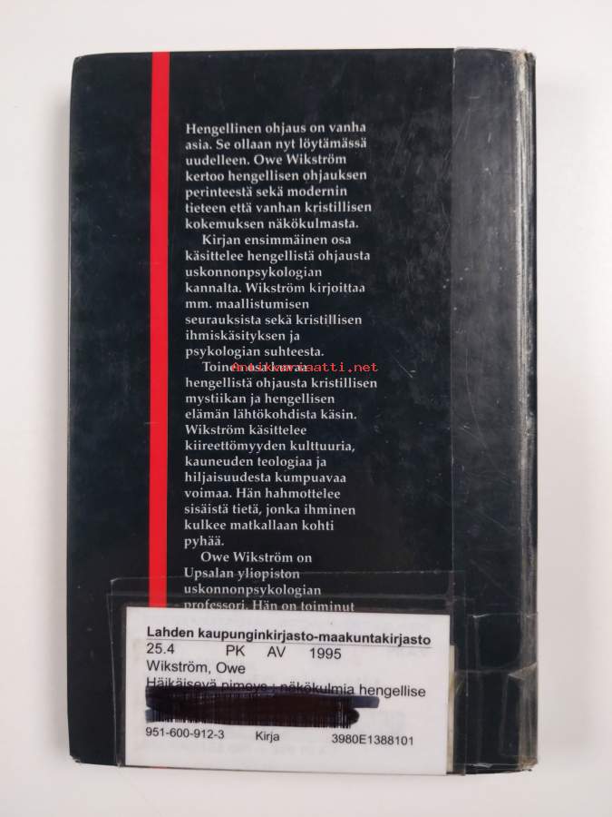 Muu(t) tekijä(t): Vuokko Rissanen, Paavo RissanenMerkinnät: omistajamerkintä (tarra)Alkuteos: Det bländande mörkretAsiasanat: hiljaisuus, uskonelämä, sielunhoito, kristinusko, hengellinen ohjaus, elämänfilosofia, symbolit, spiritualiteetti, estetiikka, maallistuminen, uskontopsykologia