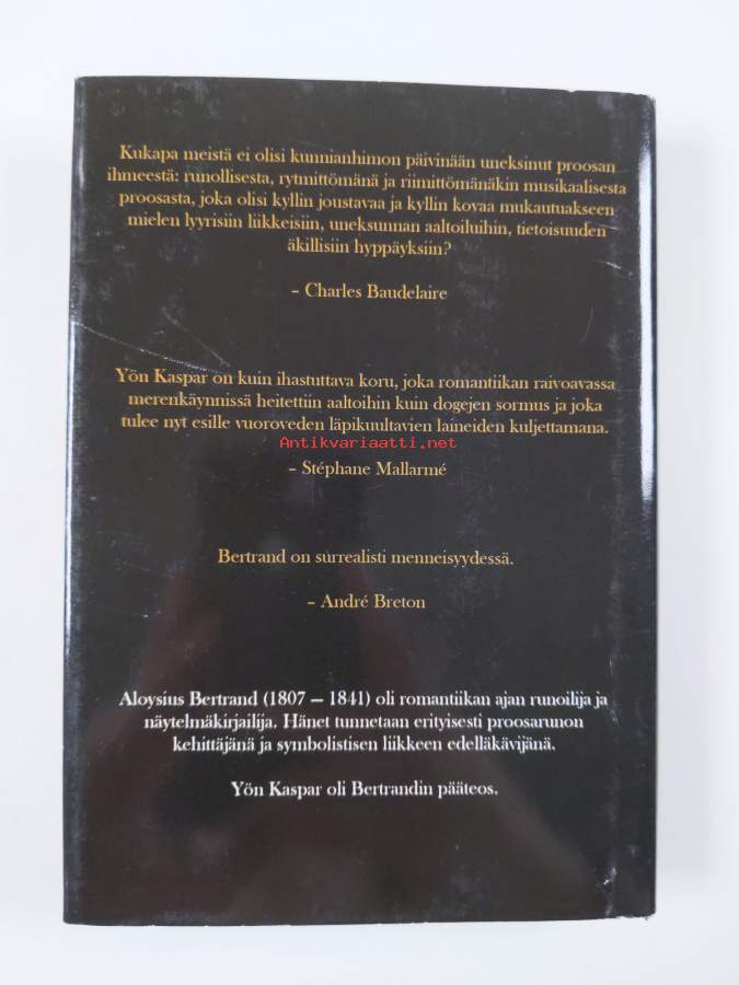 Muu(t) tekijä(t): Aki Salmela, Tommi NuopponenMerkinnät: omistajamerkintä & exlibris: P. A-OAlkuteos: Gaspard de la nuit