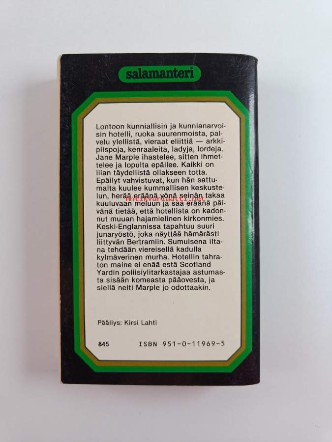 Muu(t) tekijä(t): Simo MäenpääSarja: SalamanteriAlkuteos: At Bertram's hotelAsiasanat: Neiti Marple