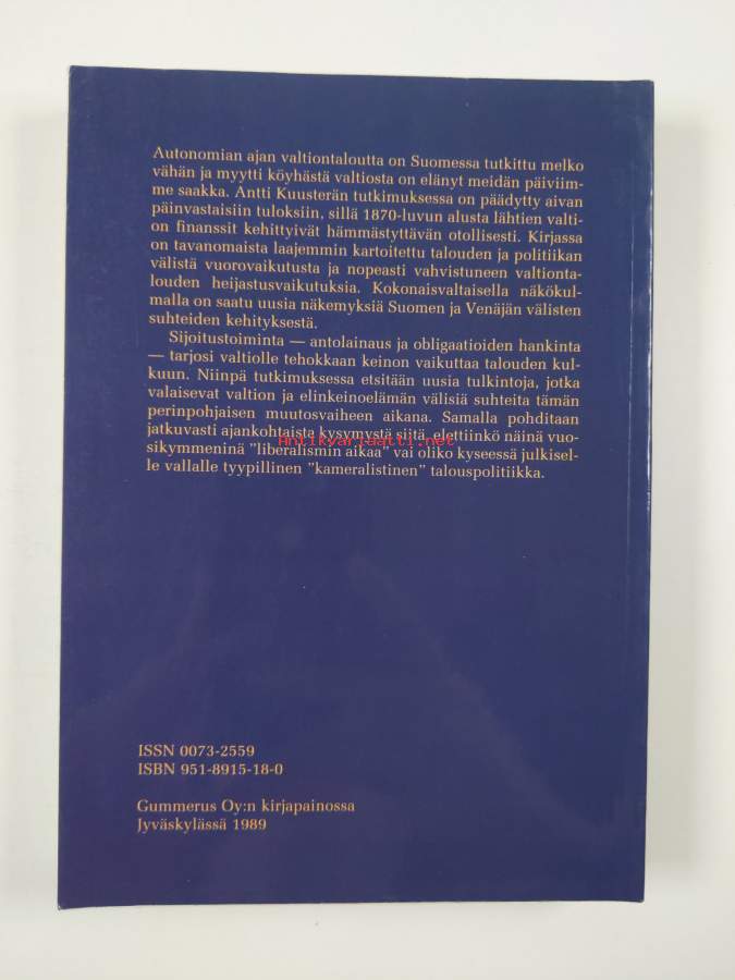 Merkinnät: omistajamerkintäSarja: Historiallisia tutkimuksia 149Asiasanat: historia, taloushistoria, valtiontalous, valtio