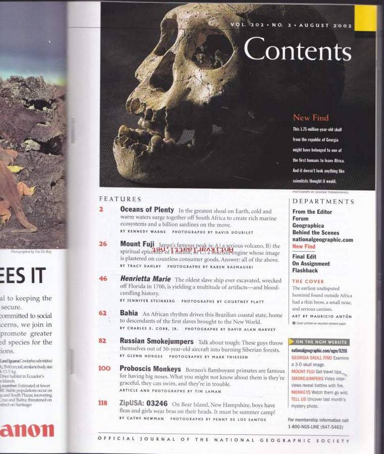 National Geographic - August 2002. Human family tree - The First Pioneer? Mount Fuji - Sacred Summit