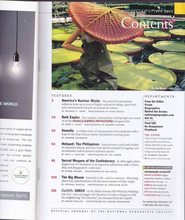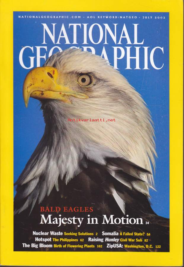National Geographic - July 2002. Majesty in Motion - Bald Eagles. Nuclear Waste. The Phillippines.